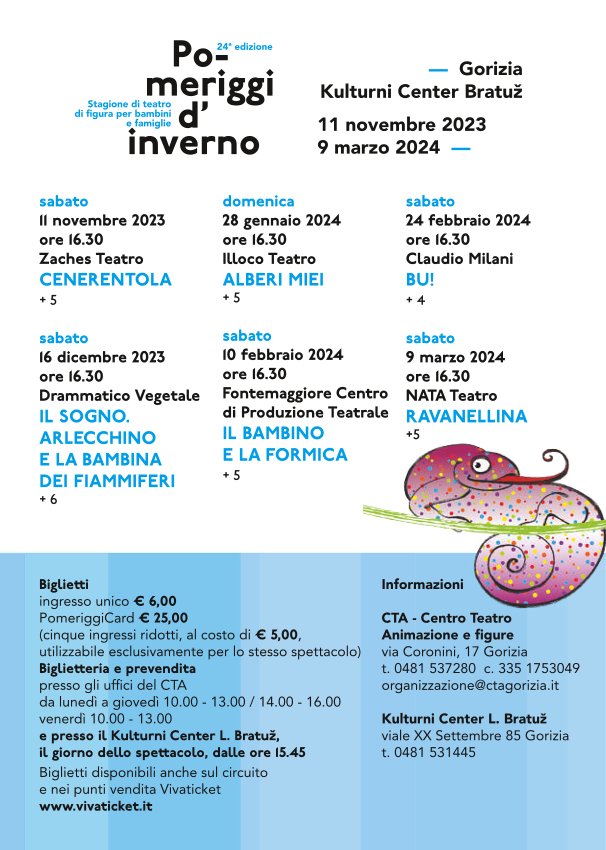 CTA - Centro teatro animazioni e figure presenta la 24° stagione di teatro di figura per bambini e famiglie "POMERIGGI D'NVERNO"